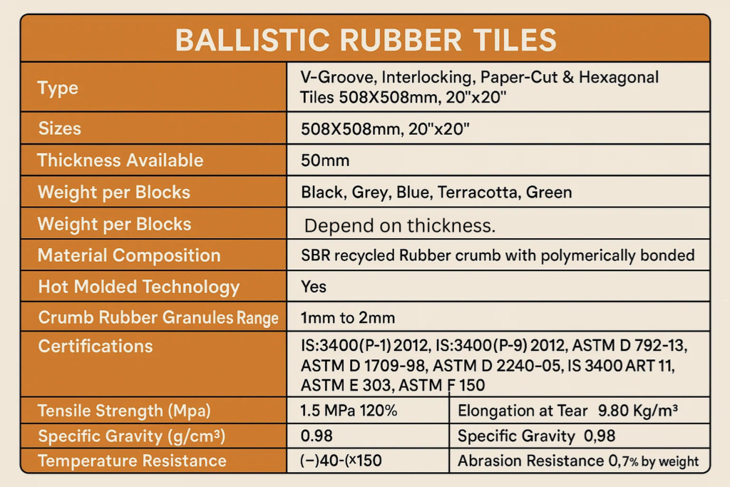 - Environmental Sustainability Since ballistic rubber tiles and ballistic rubber floorings are typically made from recycled materials, they contribute positively to sustainability efforts while still providing premium performance.